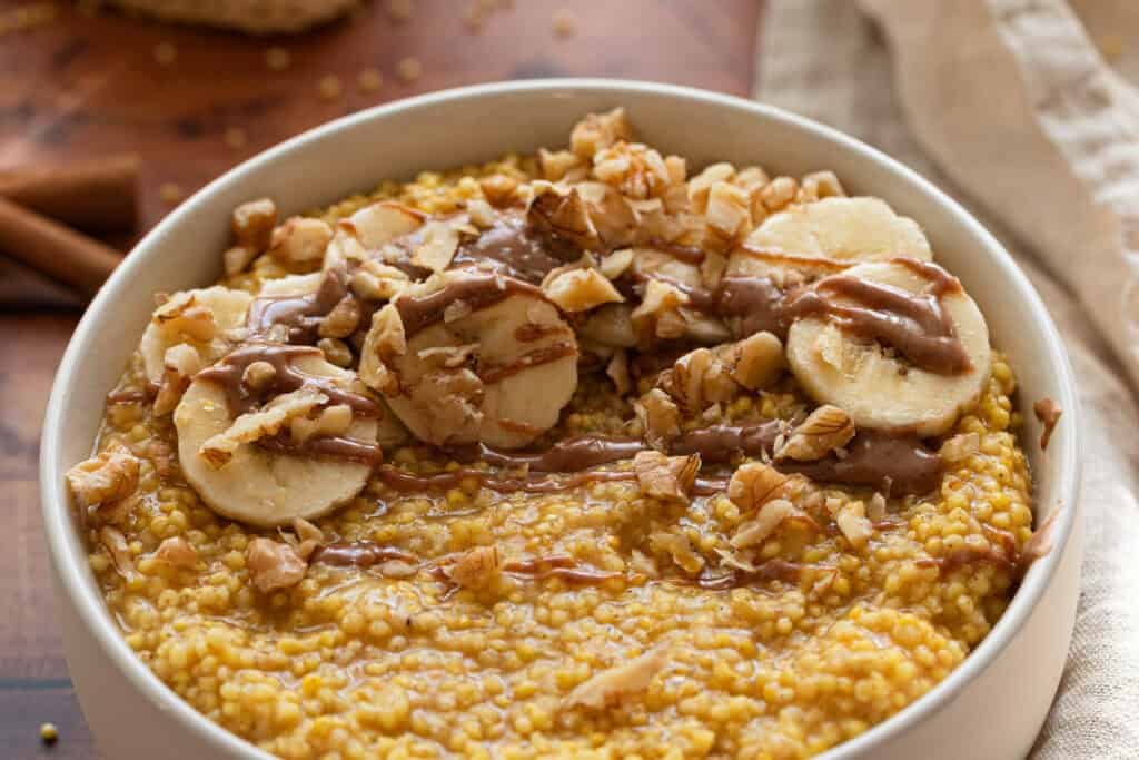 - Veganer Hirsebrei mit Banane und Orangensaft