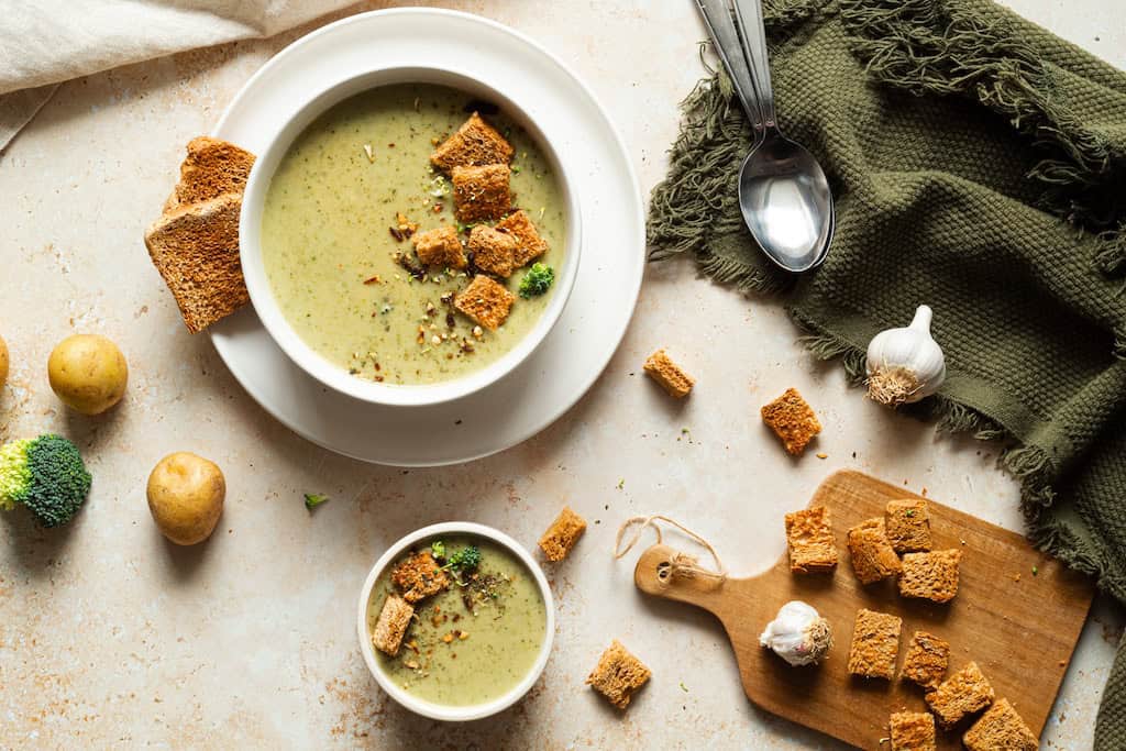 Vegane Brokkolisuppe mit Kartoffeln und Kokosmilch