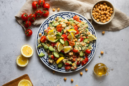 Veganer Couscous Salat mit Kichererbsen und Minze Die Zubereitung ist …