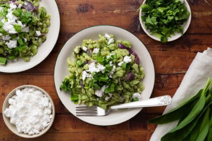 Vegane Bärlauchspätzle serviert mit veganem Feta In diesem Beitrag zeige …