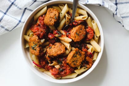 Vegane Hackbällchen mit italienischer Tomatenpasta Das vegane Hack oder Faschierte …