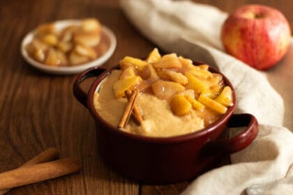 Grießbrei mit Hafermilch und Apfel-Zimtkompott! Für den veganen Grießbrei brauchst …