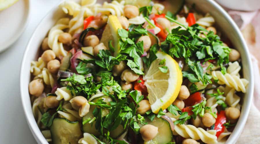 Die vegane Pasta mit buntem Gemüse ist ein ideales Sommerrezept! …