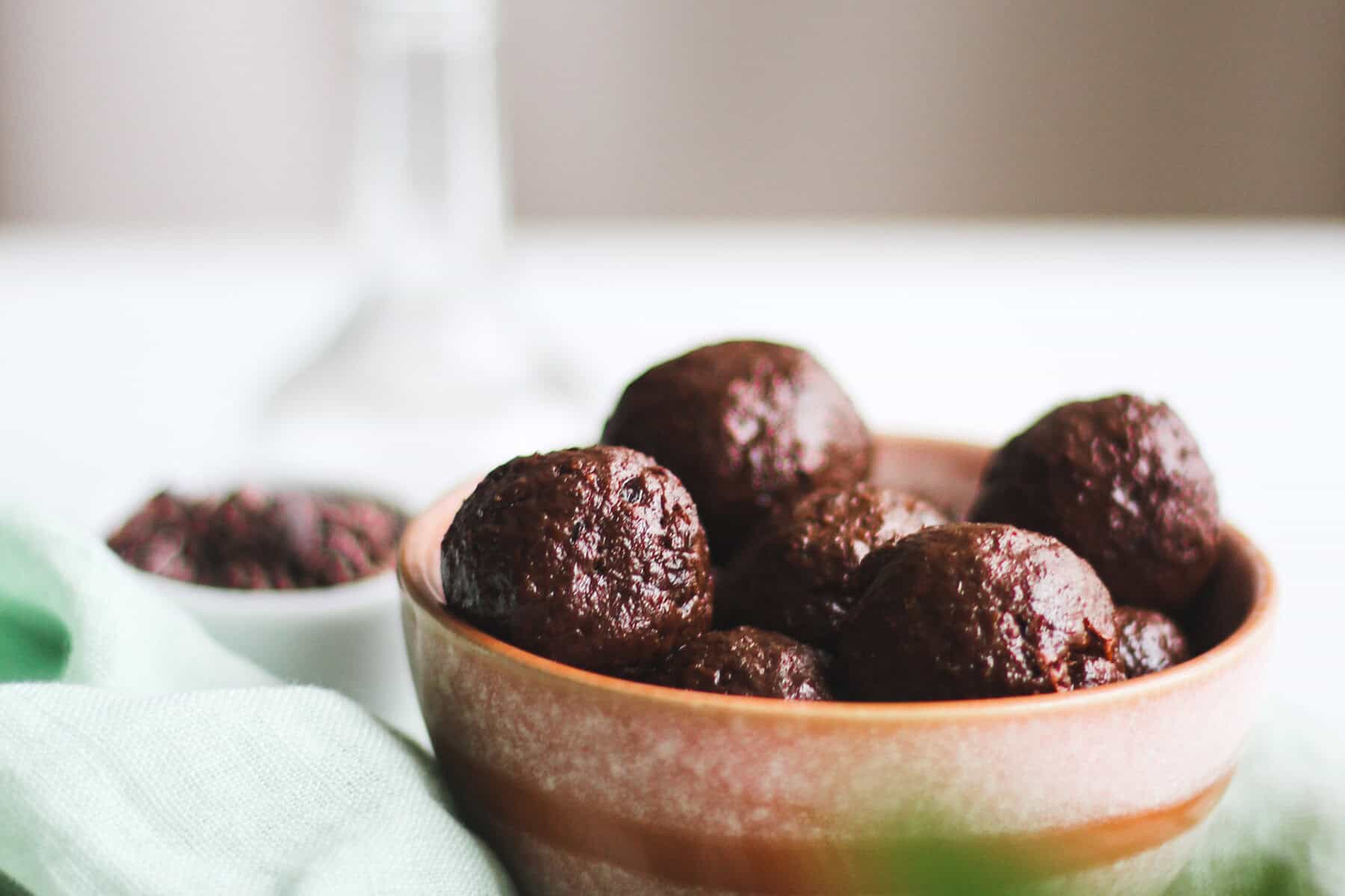 Magst du es doch lieber schokoladig? Dann bist du bei den Brownie Energy Bites goldrichtig. Sie werden mit Datteln, gepuffter Hirse und Walnüssen zubereitet.