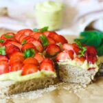 Wenn du ein weiteres Kürbis-Dessert zubereiten möchtest, dann probiere unbedingt den saftigen und veganen Kürbiskuchen aus. Der Kuchen wird zusätzlich mit einer erfrischenden Zitronen-Creme serviert.