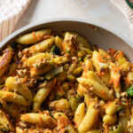 Tipp: Die vegane Kürbis Pasta eignet sich super zum Vorkochen. Du kannst einfach etwas mehr davon Zubereiten und in luftdicht verschließbaren Boxen für bis zu drei Tage im Kühlschrank aufbewahren.