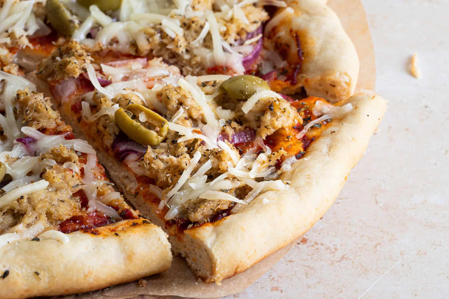 So kannst du ohne viel Mühe eine knusprige vegane Thunfisch Pizza selber backen
