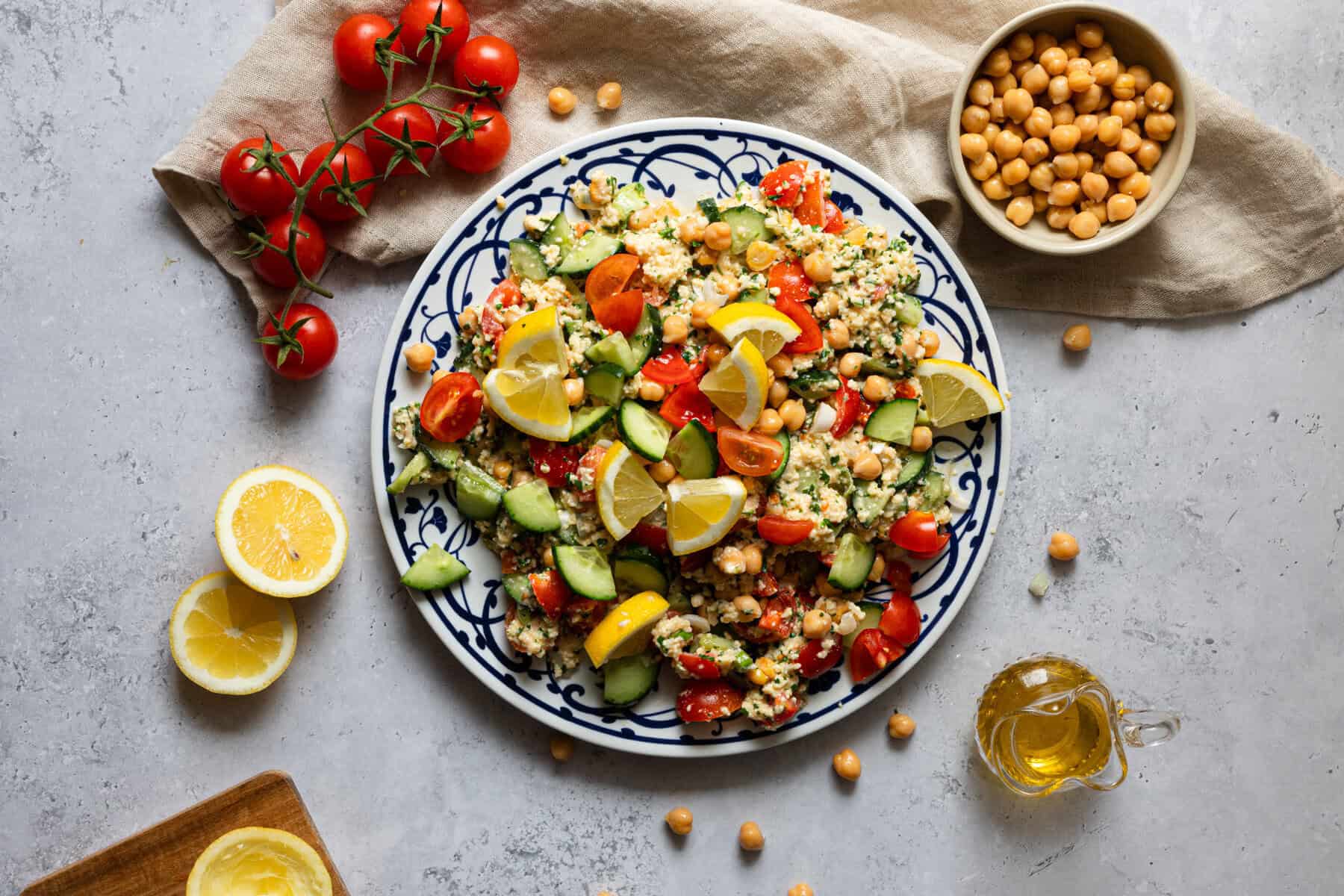 Veganer Couscous Salat mit Kichererbsen und Minze